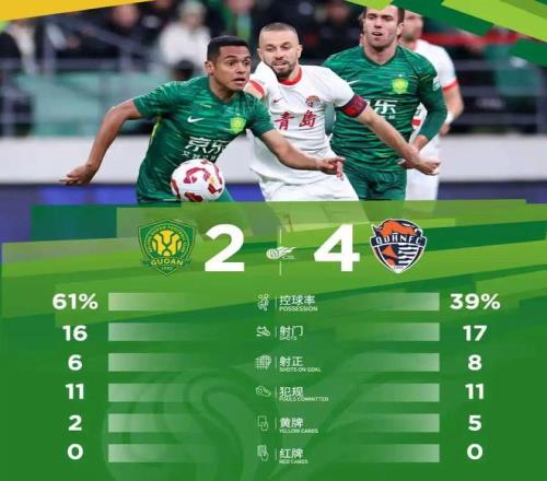 10月26日,在2025华润饮料中超联赛第28轮比赛中,北京国安主场2-4负于青岛海牛。