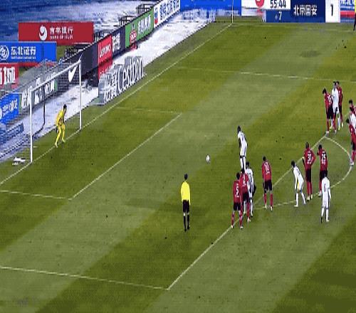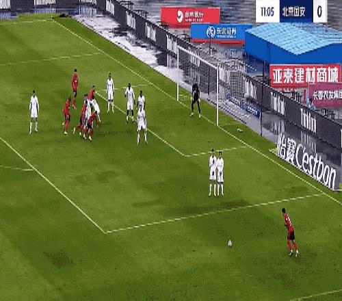 第3分钟,长春亚泰获得前场任意球,西普里安打出低平球,皮球穿越人墙,被侯森没收。
