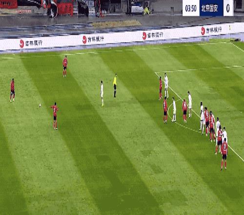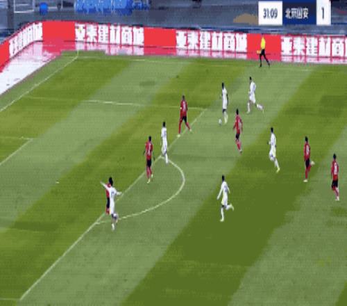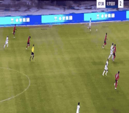 第19分钟,北京国安获得角球,塞尔基尼奥在无人盯防的情况下,头球破门。