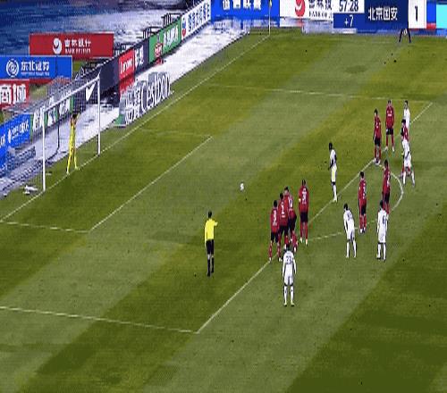 第32分钟,法比奥将球分到边路,王刚下底传中,杨立瑜门前包抄铲射破门。但这一波进攻发动的过程中,曹永竞手球在先,进球无效。