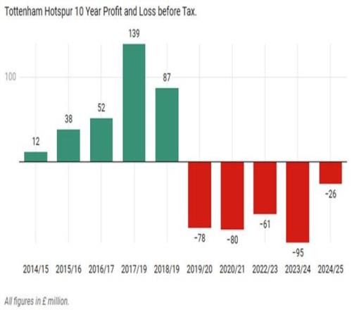 托特纳姆热刺一向被认为是一支精打细算的球队,而前任主席列维则更是和精(kou)明(men)二字牢牢绑定。在刻板印象里,热刺可能会是最后一个被指摘财务问题的俱乐部,而那些新球场里丰富的收费活动和全英最贵的票价无一不在彰显列维精明的头脑。然而,球队的情况并没有想象中乐观。