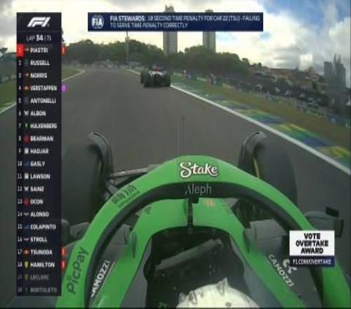 第十二圈:拉塞尔超越哈贾尔,贝尔曼超越劳森,角田裕毅因引发与斯托尔的碰撞被罚10秒