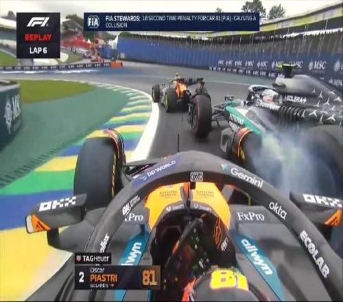 汉密尔顿因引发与科拉平托的碰撞被罚5秒