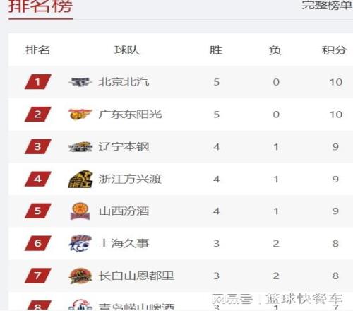 目前,积分榜榜首属于北京队,他们已经取得了5胜0负的战绩,以一波5连胜,独占鳌头。广东队则紧跟其后,他们这一轮比赛的对手是广州队,广东队最终以93-85击败了广州队,成功拿下赛季第5胜。凭借着这一波5连胜,广东队继续紧追北京队,排在积分榜第2名。值得一提的是,截止到目前,CBA全联盟中,也就只剩下北京队和广东队,他们暂时保持不败金身,还没有输过球。