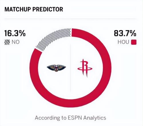北京时间1月19日,NBA常规赛继续进行,火箭坐镇主场迎战鹈鹕。近期鹈鹕状态糟糕,近10战仅仅获得2胜,上一场以119-127不敌步行者,进攻端虽有亮点却难掩防守端的崩盘,锡安空砍27分6篮板7助攻,墨菲、萨迪克·贝分别拿到22分、20分,但替补席实力孱弱成为致命短板,普尔虽入账11分,但他在场上失误频发,正负值球队倒数,给球队带来的副作用明显。10胜34负的战绩,排在西部倒数。反观火箭,上一轮以5分险胜缺少爱德华兹的森林狼,这场胜利虽止住颓势,却暴露了球队的进攻顽疾。火箭能拿下胜利,全靠核心杜兰特的稳定输出——他18投11中高效砍下39分,同时送出7次助攻串联全队。申京也延续内线统治力,但角色球员的状态依旧拉胯,3分投射稳定性不足的问题未能得到根本改善。两队本赛季首次交锋,客场作战的火箭遭遇大逆转,此役,鹈鹕的穆雷、琼斯、阿尔瓦拉多缺阵,火箭范弗利特、伊森缺阵。ESPN给出的胜率预测,火箭高达83.7%。