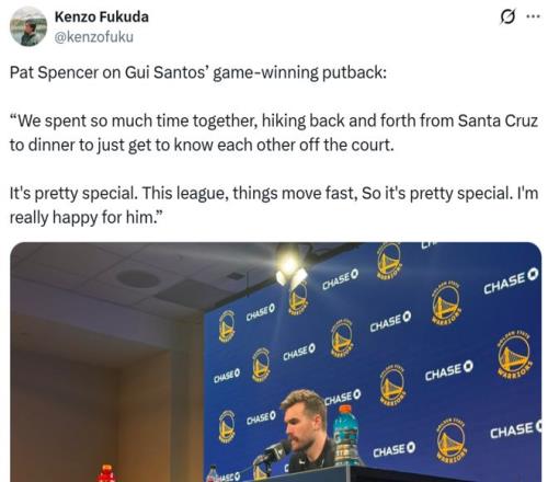 勇士队之所以能够逆势拿下胜利,桑托斯与斯潘塞两大奇兵成为功臣。