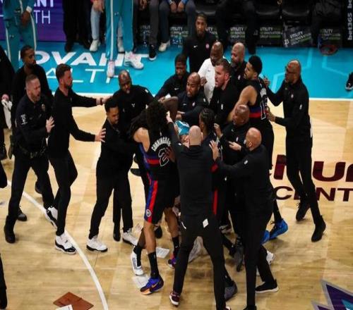 活塞的杜伦和迪亚巴特在篮下起了点冲突